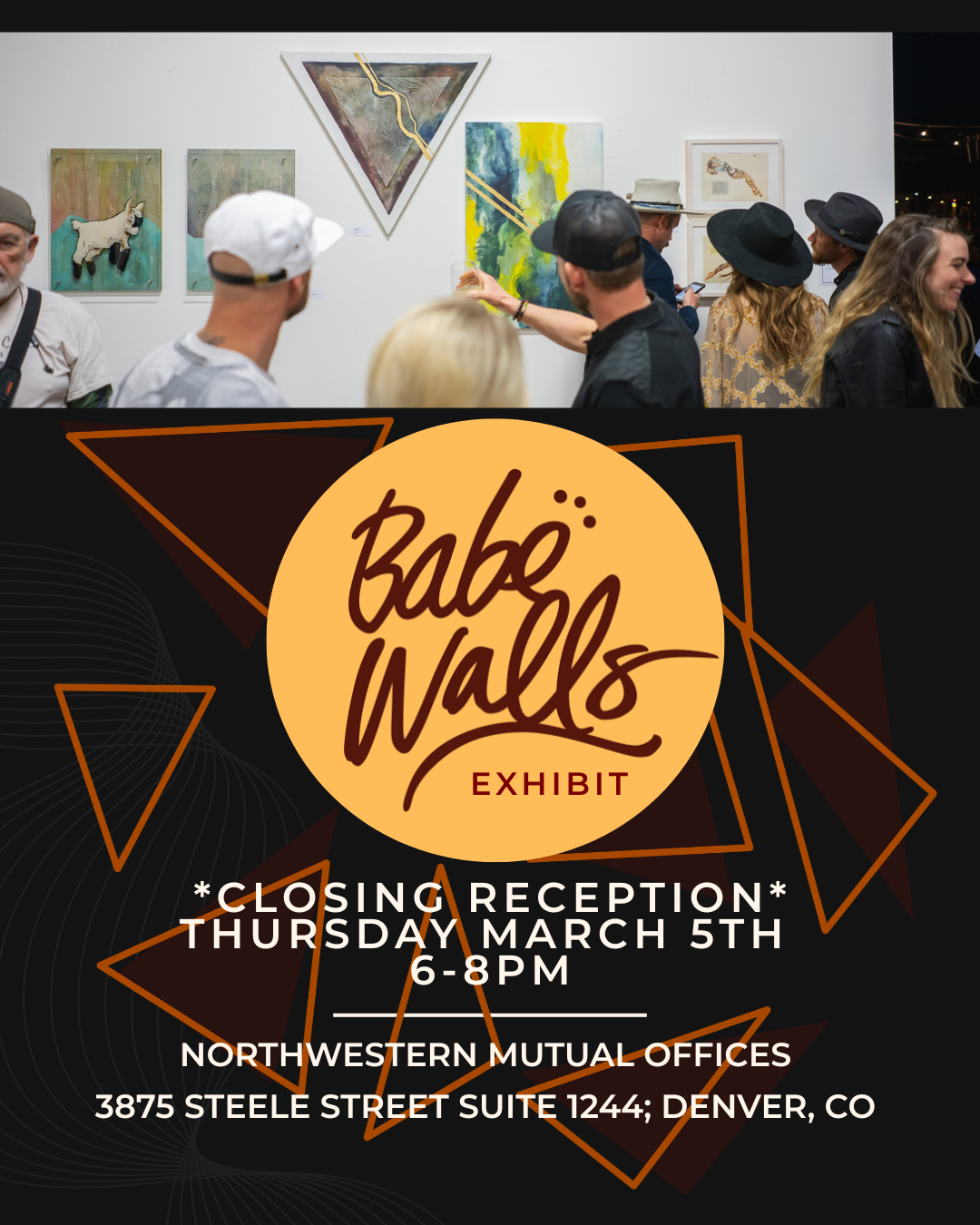 Please join us for the closing reception for a Babe Walls exhibition at the Northwestern Mutual offices in RiNo. We will have light apps, drinks, merch and hopefully lots of art sales!